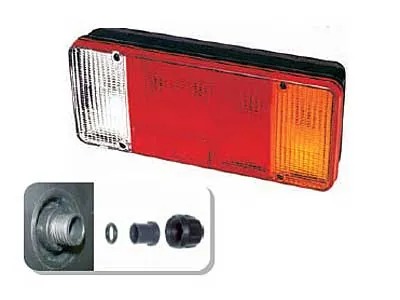 Professionellt bakljus med 5-kammare konstruktion för tydlig signalering och ökad säkerhet. Detta högerkamonterade bakljus är utrustat med integrerad reflektor och backljus för optimal synlighet. Lampan levereras med gummigenomföring på baksidan för vattentät installation och har standardiserade skruvhål med 190mm centrumavstånd för enkel montering. BA15s-sockel ger kompatibilitet med vanliga fordonsglödlampor. Med sina kompakta mått på 304x131x82mm passar detta bakljus utmärkt till släpvagnar, lastbilar, bussar och tunga fordon. Den robusta konstruktionen med 5 separata kamrar säkerställer att alla ljusfunktioner är tydligt åtskilda enligt trafikregler. Perfekt som reservdel eller vid uppgradering av befintlig belysning på arbetsfordon och trailers.