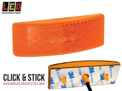 Kompakt sidomarkeringsljus från LED AUTOLAMPS med modern, slimmad design och amber färg. Lampan är endast 13mm djup och 100mm lång, vilket gör den perfekt för diskret montering på lastbilar, släpvagnar och bussar. Utrustad med 3 kraftfulla LED-lampor och integrerad reflektor för optimal synlighet. Fungerar med både 12V och 24V system, vilket gör den kompatibel med de flesta tunga fordon. Den smarta click&stick-monteringen gör installationen enkel och snabb utan komplicerade fästen. Lampan är stötsäker och klarar tuffa förhållanden tack vare IP67-skydd mot damm och vatten. Levereras med 350mm kabel för flexibel montering. Godkänd enligt ECE och EMC för laglig användning i trafik. Idealisk som sidmarkeringsljus på tunga fordon, släp och trailers där låg profil och hög synlighet krävs.
