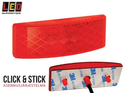 Kompakt och slimmad sidomarkeringslampa från LED AUTOLAMPS med modern design och tre kraftfulla röda lysdioder. Med sina kompakta mått på 100x38x13mm passar denna markeringslampa perfekt för lastbilar, släpvagnar, bussar och andra tunga fordon. Den smarta Click&Stick-monteringen gör installationen enkel och snabb utan krångliga verktyg. Lampan är utrustad med integrerad reflektor för maximal synlighet och levereras med 350mm kabel för flexibel montering. Tack vare 12-24V spänning fungerar den i både personbilar och lastbilar. Stöttålig konstruktion och IP67-klassning garanterar pålitlig funktion i tuffa väderförhållanden. ECE och EMC-godkänd för trafiksäker användning på europeiska vägar. Perfekt för dig som söker en elegant och driftsäker markeringslösning som uppfyller alla krav för fordonsbelysning.