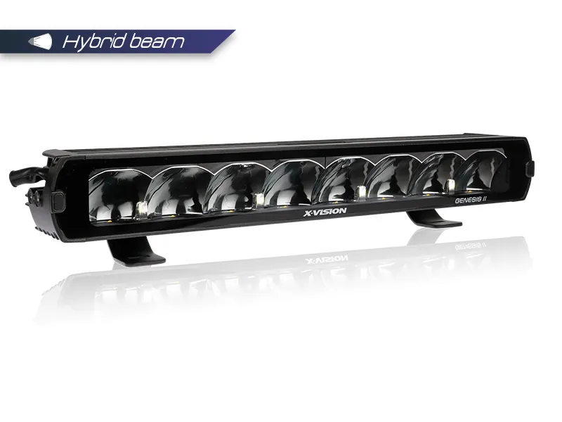 OPTIBEAM Genesis II 600 Hybrid beam är en vidareutvecklad version av den populära X-Vision Genesis-serien. Detta 548mm långa LED-extraljus kombinerar kraftfull fjärrbelysning med elegant design och praktiska positionsljus. Med 7400 lumen faktisk ljusstyrka och 4500K färgtemperatur ger lampan ett naturligt vitt ljus som når 595 meter vid full effekt. Den hybridstrålmönstret ger både bredd och räckvidd, perfekt för krävande körförhållanden. Lampan är R10 och R112-godkänd för legal användning på väg och drar 7,85A vid full effekt. Den breda spänningstoleransen 9-36V gör den kompatibel med de flesta fordon. Genesis II 600 har ett ramlöst, modernt utseende med Gemstone-positionsljus mellan LED-modulerna. Levereras med 2,2 meter kabel och 4-pin DTP-kontakt för enkel installation. 60 månaders garanti ger trygghet för din investering.