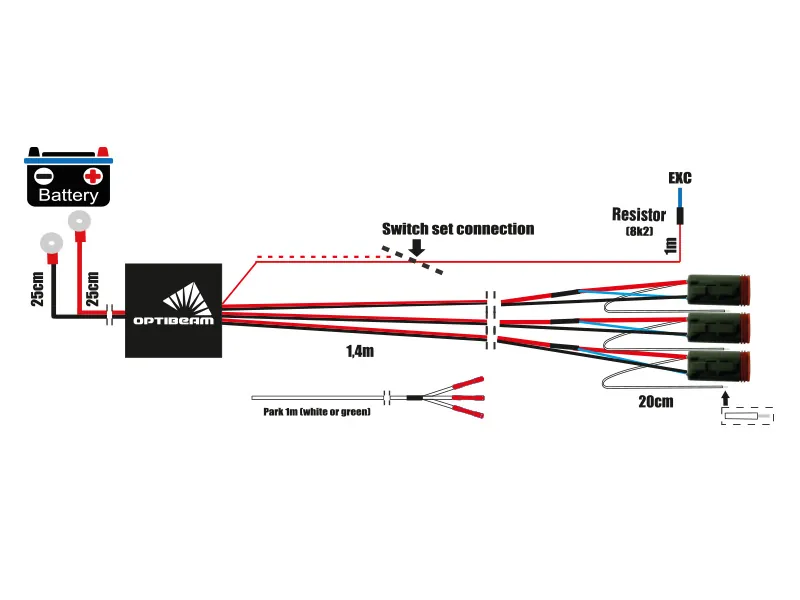 Professionellt kabelkit från OPTIBEAM för enkel och säker installation av extraljus. Innehåller 3 stycken 4-pinniga Deutsch DT-kontakter som ger snabb och pålitlig anslutning av tillsatsbelysning. Kabelsatsen är CAN-bus kompatibel vilket gör den perfekt för moderna fordon med avancerad elektronik. Korrosionsskyddade kontakter säkerställer långvarig funktion även under tuffa förhållanden. Hanterar upp till 3x150W vid 12V eller 3x300W vid 24V, vilket gör den idealisk för både personbilar, lätta lastbilar och tunga fordon. Deutsch-kontakterna är branschstandard inom fordonsbelysning och erbjuder säker koppling som tål vibrationer, fukt och smuts. Perfekt för dig som vill installera extraljus på ett professionellt sätt utan att kompromissa med kvalitet eller säkerhet. Snabb installation som sparar tid jämfört med traditionell kabeldragning.
