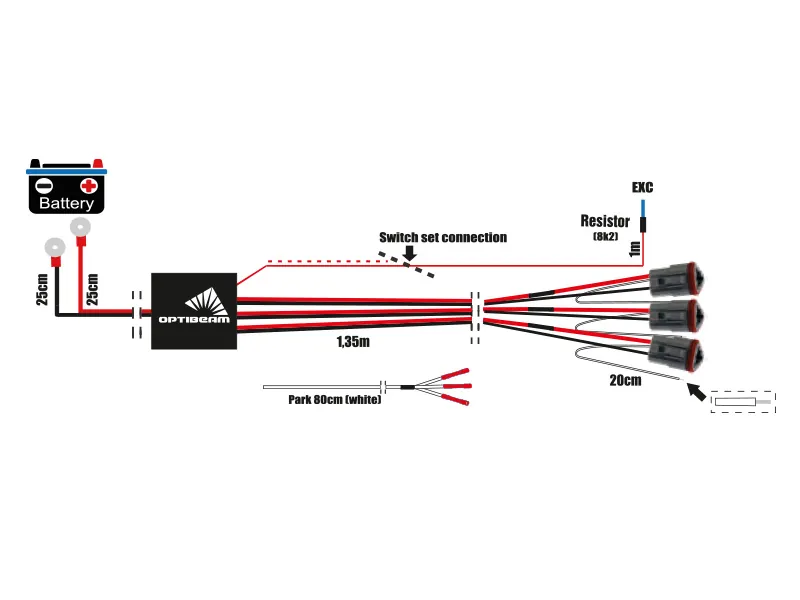OPTIBEAM Kabelsats med DT-kontakter 12/24V 3x90W/180W