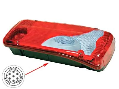 Professionellt 7-kammars bakljus från Vignal med komplett belysningsfunktionalitet för tunga fordon. Detta högerkopplade bakljus kombinerar blinkers, broms-, positions-, back- och dimljus samt reflexer i en enhet. Mått 400x160x88mm med 152mm skruvavstånd för enkel montering. Spänning 12-24V gör lampan universell för både lastbilar, bussar och släpvagnar. Utrustad med AMP 1.5 7-polig kontakt på baksidan för pålitlig anslutning. Godkänd enligt ADR och ECE E2 2040 för professionell användning i kommersiell trafik. BA15s-sockel för enkel lampbyte. Den robusta konstruktionen med 7 separata kammare ger optimal ljusfördelning och uppfyller alla krav för tunga fordon. Perfekt som reservdel eller uppgradering för lastbilar, trailers, släpvagnar och arbetsmaskiner som kräver certifierad belysning enligt europeiska standarder.