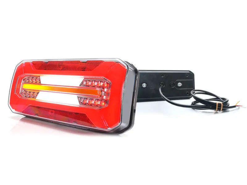 Professionellt LED-bakljus från Was med komplett multifunktion för moderna fordon. Detta avancerade bakljus kombinerar positions-, stopp-, dimljus- och backljusfunktioner med dynamisk blinkers och skyltbelysning i en robust enhet. Mått 306x133x60,6mm passar perfekt till lastbilar, släpvagnar och andra tunga fordon. Godkänd enligt ECE och ADR-standard för säker användning i kommersiell trafik. Skyddsklass IP66/68 garanterar full funktion i alla väderförhållanden, från kraftigt regn till dammiga miljöer. Den 2 meter långa kabeln ger flexibel montering och enkel installation. Integrerad reflex och samtliga nödvändiga ljusfunktioner gör detta till en komplett bakljuslösning som uppfyller alla lagkrav. Perfekt för yrkesförare som kräver tillförlitlig belysning dygnet runt. Den dynamiska blinkersen ger modern look och förbättrad synlighet i trafiken.