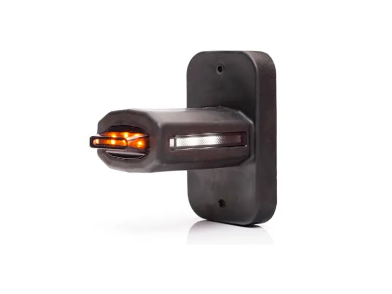 Professionellt LED sidomarkeringsljus från Was för markering av fordons konturer. Denna mörka markeringslampa är utformad för montering på höger sida och fungerar som front-, bak- och sidmarkering. Lampan arbetar med både 12V och 24V system, vilket gör den perfekt för såväl personbilar som lastbilar och tunga fordon. Med kompakta mått på 101,60 x 58,00 x 100,00 mm passar den i de flesta monteringspositioner. Godkänd enligt ECE och ADR-standarder för användning i kommersiell trafik och transport av farligt gods. Den höga IP 6K9K-klassningen garanterar fullständigt skydd mot damm och tål högtryckstvätt, vilket är avgörande för fordon som används i tuffa miljöer. Levereras med 400 mm kabel för enkel installation. Idealisk för lastbilar, bussar, släpvagnar, arbetsmaskiner och andra tunga fordon som kräver tydlig sidomarkering enligt trafikföreskrifter.