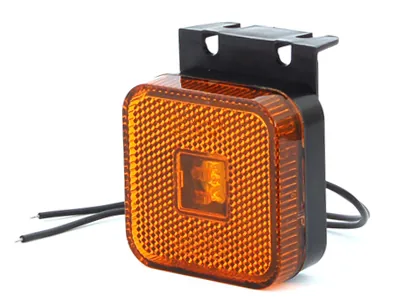 Kompakt LED-sidomarkeringsljus från WAS med bärnstensgul färg, perfekt för markering av fordon. Lampan levereras med ett praktiskt 90° monteringsfäste och är godkänd enligt ECE-standard. Med sina kompakta mått 65x65x28mm passar den utmärkt på lastbilar, släpvagnar, bussar och andra tunga fordon. Robust konstruktion klassad IP66/68 ger utmärkt skydd mot vatten och damm, även under tuffa väderleksförhållanden. Universell spänning 12-24V gör lampan kompatibel med de flesta fordonssystem. Enkel montering med två fästhål (ø5mm, avstånd 30mm) och inkluderade kablar (220mm, 0.75mm²). Den 90-gradiga monteringsfästet ger flexibel placering och säkrar lampan stadigt på fordonets sida. Perfekt synlighet från sidan garanterar ökad säkerhet i trafiken, både dag och natt.