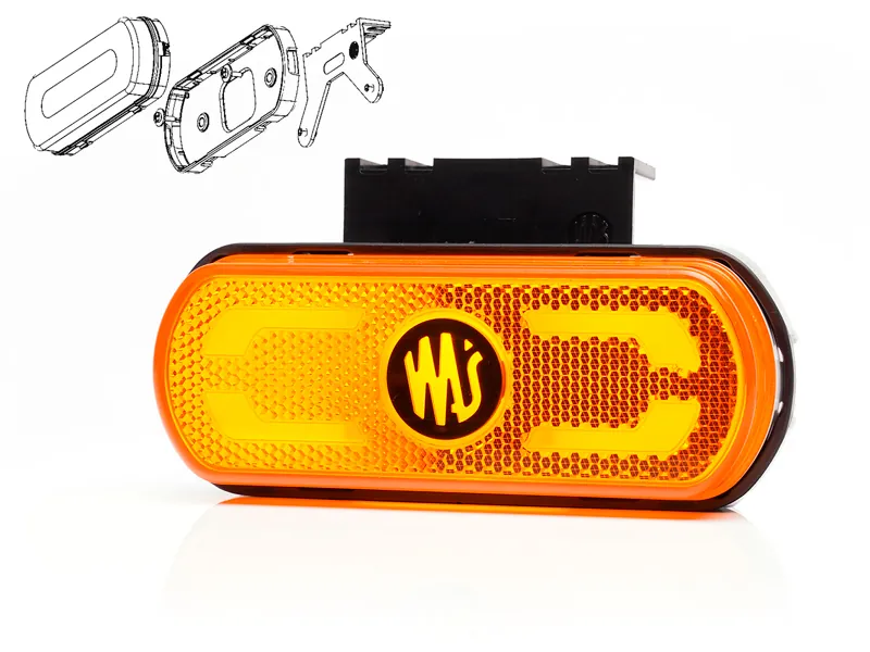 Professionellt LED sidomarkeringsljus från Was med integrerad blinkersfunktion i bärnsten färg. Detta mångsidiga markeringsljus är konstruerat för både 12V och 24V system, vilket gör det perfekt för personbilar, lätta lastbilar och tunga lastbilar. Med kompakta mått på 133,8 x 53 x 25 mm och inkluderad monteringsfäste på 70,7 mm höjd kan lampan monteras både horisontellt och vertikalt för maximal flexibilitet. Kabelns längd på 220 mm underlättar installationen. Lampan är certifierad enligt ECE och ADR-standarder, vilket säkerställer att den uppfyller kraven för användning på offentliga vägar och för transport av farligt gods. Den robusta konstruktionen med IP 6K9K-skydd garanterar tillförlitlig funktion även under extrema förhållanden med högtryckstvätt och fukt. Idealisk för lastbilar, släpvagnar, bussar och entreprenadmaskiner som kräver tydlig sidovisning och riktningsvisning.